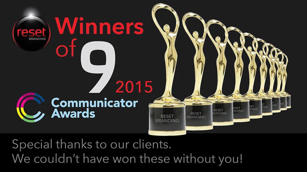 New York, NY (June 30, 2015) — Reset Branding has walked off with a trophy-case full of AIVA Communicator Awards, as announced by the Academy of Interactive and Visual Arts today. The Communicator Awards, based in New York, honors the best in advertising, corporate communications, public relations and branding. This year’s competition received thousands of entries from agencies of all sizes, making it one of the largest awards show of its kind in the world.